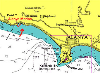 Alanya Marina (36°33.25’N 31°57.07’E): Die Marina ist durch einen neuen Wellbrecher zusätzlich gegen Ost und Südost geschützt. Zum Service der Marina gehört ein 100 to Travellift mit 200 Landstellplätzen bis 7,20 m Breite und 250 Liegeplätzen bis 30 m im Wasser. Alle Arten von Reparaturen sind möglich. Marina-Schlauchboote helfen den Yachten beim An- und Ablegen. Notfallwache rund um die Uhr. Sanitäranlagen wie in anderen türkischen Marinas - Heißwasser zum Duschen rund um die Uhr. Waschsalon. Abstellplätze, Erste-Hilfe-Station, Marina-Supermarkt, WLAN (kostenloser Internetzugang), Schwimmingpool, Tennisplatz, kostenlos für Liegeplatz-Yachten, Restaurant und Bar, Tankstelle. 24 Stunden Wachservice. Bilder zur Marina: klick Von Alanya sind die antiken Orte Side, Perge und Thermessos mit ihren schönen Theatern in Tagestouren zu erreichen. Der internationale Antalya Flughafen ist 125 km entfernt. Fahrtzeit ca 1 Std 15 Min. mit Taxi (ca EUR 55). Außerdem fahren preiswertere Linienbusse nach Antalya. Mehr Infos über die Marina klick Anschrift: Alanya Marina, Akhan Mevkii, Yat Limani, 07400 Alanya/Türkei, Postbox 535 Tel. +90 242 512 12 34, +90 242 511 34 00, +90 242 512 12 19, Mail info@alanyamarina.com.tr Web: www.alanyamarina.com.tr/eng/index.html