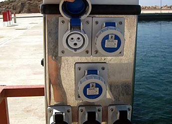 Die allermeisten Yachten brauchen nur die blaue mit 16 Amp abgesicherte Stromversorgung. So wäre es doch sinnvoll gewesen, wenn man jede Versorgungssäule mit den blauen und einigen wenigen roten Steckdosen versehen hätte, wie es meist üblich ist. Nur knapp die Hälfte der Säulen war mit den blauen Steckdosen für die Stromversorgung versehen, wie sie von den meisten Seglern gebraucht wird.