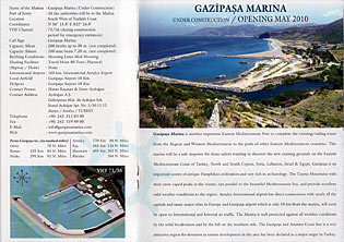 Alle Marinas Tuerkei | Kalamis Fenerbahce Marina | City Port Pendik | WIM Marina | Istanbul Marina | Yalova Marina | Ayvalik Marina | Altinova Marina | Foca Hafen | C+N Cesme Marina | Alacati Marina | Teos Marina | Setur Kusadasi | D-Didim | Port Iassos | Palmarin Yalikavak | Tuerkuekue Marina | D-Turgutreis | Milta Bodrum | Marti Orhaniye | Palmiye Orhaniye | Netsel Marmaris | JOYA Marina | Yacht Marina | My Marina | Goecek Marinas | Marinturk Goecek | D-Goecek | ECE Fethiye | Fethiye Alternativen | Setur Kas | Setur Finike Marina | Turkiz Kemer | Setur Antalya | Alanya Marina | Kumkuyu Marina | Mersin Marina | Preisvergleich 2013 | Travellift 450 | Nordzypern Marinas | Suedzypern | Karpaz Zypern | East Med Marinas | Baustop in Datca | Neue Marina Zypern | 1. Charterbasis Kas Marina | In Planung: Mandalya Marina | Knidos Marina | Dalaman Marina | Datca Marina | Oeren Marina Dodekanes: Setur Lesbos | Mytilini-Stadtkai | Chios Volissos | Setur Samos | Kos Marina | Leros Evros Marina | Leros Agmar Werft | Rhodos Marina | Dhiaporos auf Sithonia Kroatien: D-Marinas Kroatien |