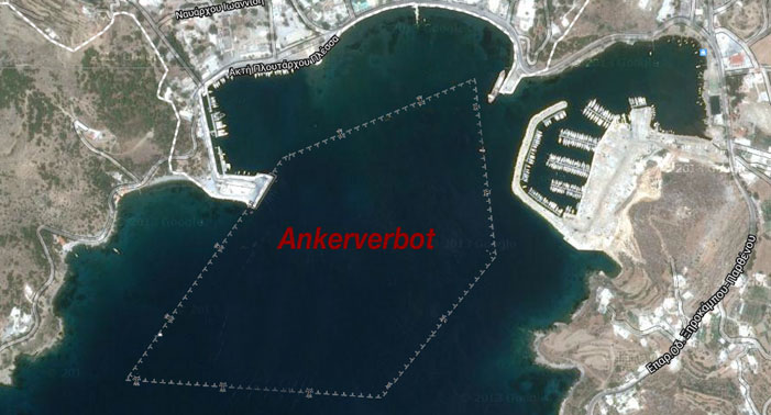 In der Veröffentlichung wurde ein Karte samt Sperrgebiets-Grenzen abgebildet, die nur noch wenig Platz für Yachten lässt. Crews, die dennoch dort ankern wollen, müssen relativ dicht unter Land gehen, um ausserhalb der Sperrzone zu bleiben. Weiter südlich des Gebietes ist es zu tief (..und ungeschützt) um zu ankern. Warum es eingerichtet wurde, geht nicht aus der Meldung hervor. Allerdings liegen im Einzugs-Bereich zwei Anleger, der eine für die Inselfähren, am anderen machen gelegentlich Frachter fest. Wer lange genug in Griechenland gesegelt ist weiss, solche Verbote müssen nicht unbedingt bedeuten, dass sie in der Praxis auch tatsächlich eingehalten oder gar geahndet werden. Doch wer in der weitläufigen Bucht in Zukunft vor Anker geht, sollte zumindest nicht überrascht sein, falls er vor Ort aufgefordert wird, den Platz zu verlassen oder dichter unter Land zu ankern. |