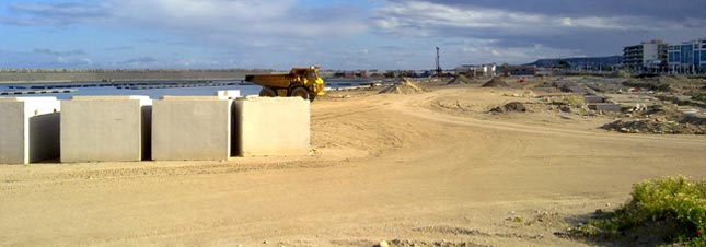 Doch nichts von alle dem. Die Ostmole und die Nordmole sind zwar fertig und die 520 m langen Schwimmstege in HeavyDuty-Ausführung aus Stahlbeton und Polystyrol sind installiert, mehr aber nicht. Das Gelände ist eine einzige Baustelle, auf der die Arbeit ruht und nur die Möven ihren Mittagsschlaf halten. Armes Griechenland.