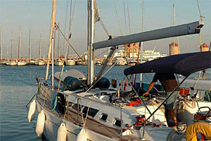 Selten Platz auf Rhodos ... 17.09.2009 ![]() Mandraki, der alte Hafen von Rhodos, war schon vor 20 Jahren überbelegt. Allerdings war es damals noch möglich in Dreierreihen voreinander festzumachen Anker im Hafenschlick, Leine zur Windmühlenpier. Dass es dabei regelmäßig zu zeitaufwändigen Ankersalat-Manövern kam, nahm man in Kauf. Außerdem konnte man bei Überfüllung östlich vor der Mühlenpier mit Buganker und langen Leinen zu den Molensteinen festmachen (was heute wegen der Fährschiffe streng verboten ist). Seit an der Windmühlenpier Murings ausgelegt sind ist es mit den Dreierreihen auch vorbei. Die Gefahr, dass sich Anker in den Muringketten vertörnen wäre zu groß. Darüberhinaus wurde fast die gesamte Pier von Charterfirmen belegt. An Wochenenden, wenn die Crewwechsel stattfinden, ist da noch nicht mal Platz für ein Minikajak. Allenfalls während der Woche zwischen Montag und Freitagmorgen kann man einen Liegeplatz ergattern. Mit viel Glück... Wir kamen diesen Sommer einmal im August und fanden natürlich auch an der Westseite des Hafens, da wo die wenigen Gästeliegeplätze sind, keinen Platz. Vorübergehend machten wir an der vorspringenden Beton-Fährpier fest, um wenigstens Wasser aufnehmen zu können - dort gibt es einen Wasserkasten mit langem Schlauch. Und dann kam die große Überraschung: Vom Fährfahrkartenverkäufer, der vorne auf der Pier auf seinem Stuhl saß, erfuhren wir, dass der rasende Schnellkatamaran, der die Inseln des Dodekanes abfährt und hier anlegt, erst am nächsten Morgen gegen 9 Uhr von Kos her käme. "You can stay for the night!" grinste er und wir hatten den besten Liegeplatz des Hafens.