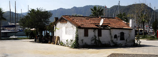 Auf verlorenem Posten gegen Abriss und Einheitsstil 11.10.2006 ![]() Das urige "Café" widersetzte sich dem Abriss und der Schuhschachtelarchitektur - im Winter 230 8-09 wurde es abgerissen und der Platz planiert Im letzten Winter war im kleinen Hafenort Göcek der Bagger los. Im Hauruckverfahren wurden die alten Katen und Fischerhäuschen abgerissen, der Platz planiert und die neuen Schuhschachteln hochgezogen. Jetzt sieht es hier aus wie überall in den gestylten Einkaufszentren aller Orten, verwechselbar und gesichtslos. Schade. Der Charme des kleinen Fischerortes, der in wenigen Jahren zu einem Zentrum des türkischen Yachtsport aufstieg und dabei viele Palmen und eine akzeptabel Hafenmeile abbekam sowie drei Marinas, zwei davon im Edelstil, ist zerstört. Die Einheimischen Ladenbesitzer und Supermarktverkäufer, die man noch vom letzten Jahr kennt, wirken verloren in dem neuen "Ambiente", irgendwie gehören sie da nicht hinein. Sie zucken mit den Schultern und tragen es mit Gelassenheit. Aber glücklich sind sie nicht. Wer für die "Ver-wüstung" verantwortlich ist, wollen sie nicht sagen. Man solle den Bürgermeister fragen, da sei man an der richtigen Adresse.