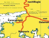 Karacasögüt wird wegen der günstigen Lage zum Flughafen Dalaman immer öfter zum Ausgangs- bzw. Zielfhafen von Oneway-Törns. Mehr: klick |