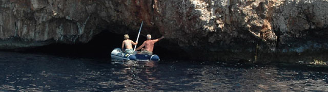 Höhepunkt eines Abstechers nach Kastellorizon: Die Blaue Grotte Sie ist nicht leicht zu finden, deshalb hier der Insider-Tipp Wer die Blaue Grotte entdecken will muss an der Südostküste entlang fahren und den GPS eingeschaltet haben. Kurs vor Postion 36°07.6180 N und 029°34.7503 lässt man das Dingi zu Wasser und rudert zur Felsküste hin. Der Eingang ist kaum auszumachen, man muss sich bücken, um hinein zu kommen... Drinnen ist es dann wunderbar.