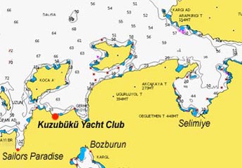 Adresse: Kuzubuku Yacht Club, Kuzubükü Mevkii, Bozburun-Marmaris/Türkiye, Tel. +90 536 501 7230 oder +90 530 347 2097, VHF Channel 77, Mail: kaptan@kuzubuku.com, Web: wwwkuzubuku.com (Mail und Web funktionierten zum Zeitpunkt der Veröffentlichung hier noch nicht, sollen aber demnächst online sein). Kuzubuekue Club | Alarga Club Ciftlik | Bigfoot | Black Sea | Bozburun | Cardas Restoran | Cam Limani Cinar Restoran | Datcas Facelift | Datca Halbinsel | Dalyan | Goecek I | Goecek II | Goekovagolf | Guelluek | Guemuesluek | Hayitbuekue | Karacasoeguet | Kleoptrainsel | Knidos | D-Maris Hotel | Olympos | Selimiye | Sercebucht | Soeguetbucht | Skippers Lieblingsbuchten | Sueden voraus | Steckbrief Suedosten | Sperrgebiet | Tuerkbuekue - kein Sommertraum | Wohin, wenn es eng wird? | Zypern | Achtung Plotter! | Marmaris aufgeputzt | Good news | Fruehjahrstoern bei NW | Fruehjahrstoern bei SE (Lodos) | Astro-Raetsel Siehe auch: Kusadasi-Ayvalik | Kusadasi - Bodrum | Bodrum - Marmaris | Marmaris - Goecek | Goecek - Antalya Griechenland: Milos | Marathokampos Samos | Pythagoreion Samos | Lipsi | Nisyros | Symi | Blaue Grotte Kastellorizon Molivos Lesbos | Monemvasia | Chios | griechisch Einparken | Hoehlenbesuch am Peloponnes | Kroatien vs. Tuerkei Santorin 2009 | Situation Juni 2012 | Rhodos Marina | Kykladen+Dodekanes 2012 | Kykladen 2013 | |