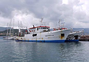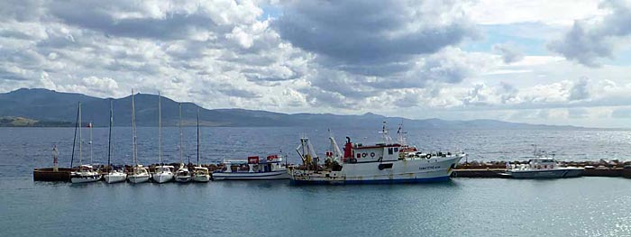 Nach Auskunft des Hafenmeisters sollen die Trawler mindestens bis September 2014 dauerhaft dort liegen bleiben. Sie werden dort generalüberholt und es wird den ganzen Tag heftig mit Schleifscheiben und Hämmern gearbeitet. Da es hier unter den Segelyachten auch einige Dauerlieger gibt, ist freier Platz sehr knapp. Zu spät einlaufende Yachten müssen dann an den wenig attraktiven Kai von Petra, zwei sm südlich von Molivos, ausweichen,.
