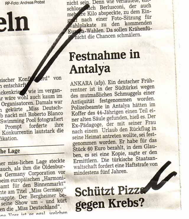 | - | Es lohnt sich nicht! Sicherheitshinweise des Auswärtigen Amtes: Es wird darauf hingewiesen, dass Drogenschmuggel in und aus der Türkei wie auch der illegale Drogenkonsum mit hohen Gefängnisstrafen geahndet werden. Der Erwerb, Besitz und die Ausfuhr von Antiquitäten (z.B. alt aussehende Gegenstände, Fossilien, behauene Steine, ja sogar Steine vom Strand, die auffällig sind*) ist verboten und kann mit Gefängnis bis zu 10 Jahren bestraft werden. Bei Verstößen sind auch für Touristen mehrere Monate Untersuchungshaft und hohe Kautionszahlungen gängige Praxis. In Einzelfällen wurden Haftstrafen verhängt. *) Erinnert sei in diesem Zusammenhang an den Vorfall im September 2003. Eine Familie wurde bei der Ausreise festgehalten, weil der neunjährige Sohn einen Stein im Gepäck hatte, den er vom Strand aufgelesen hatte und der vom Flughafen-Zöllner als "antik" eingestuft wurde. Erst nach vier Wochen kam der Vater aus dem Gefängnis frei. Das türkische "Gesetz zum Schutz von Kultur- und Naturgütern" wird unter Umständen eng ausgelegt. Dazu passt auch diese Meldung aus der Rheinischen Post vom 17.1.2004, die hier als allgemeine Warnung gezeigt wird: ![]() |
