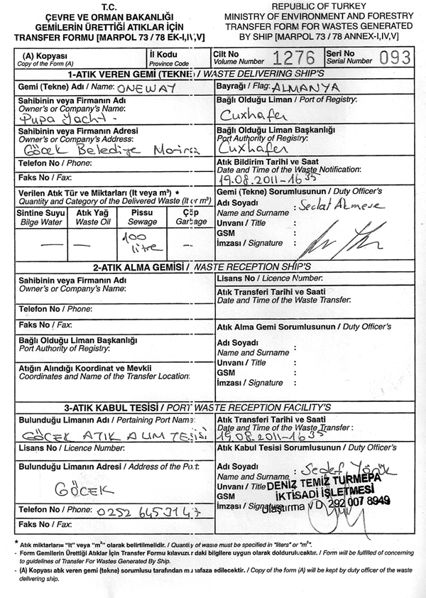 Wichtig ist, dass der Absaugvorgang vom Marina- bzw. Turmepa-Personal bestätigt wird - siehe Papier oben. Ohne dieses Papier stellt der Hafenmeister kein neues Transitlog mehr aus. Dies gilt sowohl für Charterer, die das Boot zurück geben als auch für Privatyachten, die nach Ablauf der Jahresfrist ein neues Transitlog beantragenn wollen. Angeblich kontrolliert die Küstenwache bei Dauerliegern im Golf das letzte Abpumpdatum. Gulet-Klaeranlage | Bluecard 2.0 | Bluecard im Stresstest | Tenside-Kollaps | Chancenlose Bluecard | |