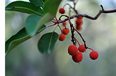 Nicht nötig, zu erwähnen, dass der Weg am Ende des Strandes wieder aufwärts führt, oder? Diesmal allerdings unter Bäumen, was alle als angenehm empfinden, denn bei etwa 25 Grad und Windstille ist es doch noch ziemlich heiß! Unter Pinien und Erdbeerbäumen wandern wir in vollkommener Abgeschiedenheit dahin. Die ersten Früchte der Erdbeerbäume sind bereits reif, ab und zu finden wir am Weg auch Wildbirnen - Verhungern braucht man in dieser Jahreszeit auch ohne Picknick nicht!