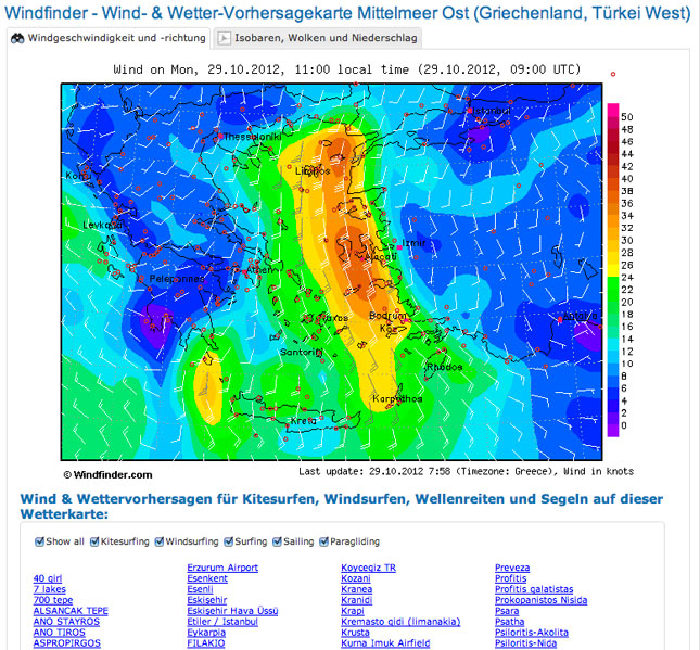 ![]() Aufgepasst: Frühjahrsstürme können auch im Mai noch fetzen! Im Sommer beschreiben die Schlechtwettertiefs einen weiten Bogen um das Östliche Mittelmeer und beeinflussen höchstens den Norden der Türkei. Anders sieht es im Frühjahr oder auch im Herbst aus. Von Mitte Oktober bis in den Mai hinein ist das Östliche Mittelmeer offen für Tiefdruckstörungen - im Winter geradezu ein Tummelplatz für Tiefs. Wer die südtürkische Riviera nur zwischen Juni und September kennengelernt hat, wird nicht glauben, welche Stürme und Unwetter in der übrigen Zeit wüten können. Am übelsten ist der Lodos, der die Südwestküste betrifft. Wie auf dem Atlantik, so gibt es auch im Mittelmeer bestimmte Bahnen, die von Tiefs bevorzugt werden. Eine vielfrequentierte Zugstraße verläuft vom Ionischen Meer nach Mittelgriechenland. Dort gabelt sich die Bahn, manche Tiefs ziehen nach Südosten weiter Richtung Zvpern, andere drehen nach Nordosten ab und wandern über die nördliche Ägäis Richtung Schwarzes Meer. Beide Tiefs bringen der türkischen Südküste Schlechtwetter und starken Wind. Sturmgefahr droht aber nur, wenn sich über der südlichen Ägäis (oft im Raum Kreta) ein Teiltief bildet und zugleich hoher Luftdruck über Anatolien und der Levante herrscht. Hat sich ein solches Teiltief gebildet, brandet es gegen das Hochdruckbollwerk im Osten an und kommt kaum noch voran. Das Luftdruckgefälle zwischen beiden Systemen in dieser Situation ist enorm. Im Zwickel zwischen beiden liegt meist der Küstenabschnitt zwischen Bodrum im Westen und Kas (Kastelorizon) im Osten an der Südküste von Lykien. Dabei wird der starke bis stürmische Süd in Landnähe durch die Küstengebirge auf Südost abgelenkt und beschleunigt (Führungseffekt). Ein bis zwei Tage kann es dort aus Südost mit 6 bis 8 Beaufort wehen, sogar orkanartige Böen wurden bei einer Lodos-Lage schon gemessen. Zu ihren beschriebenen typischen Begleiterscheinungen kommt hier eine gefährliche Legerwall-Situation. Sobald das kleine Tief aus der südlichen Ägäis verschwunden ist, hört der Spuk auf. Meist dreht der Wind dann auf Südwest und bringt einen Sturmböen mit hoher Gewalt, später auf Nordwest. Solche Stürme drohen, wie gesagt, auch im Mai, wenn bereits viele Charterflotten unterwegs sind. In der Umgebung von Marmaris ist der Sturm bei den Einheimischen als "Schwalbensturm" bekannt. Es heißt, erst wenn der Schwalbensturm vorbei ist, beginnt der Sommer an dieser Küste. Einen zuverlässigen Wetterdienst bietet der WINDguru meist ziemlich präzise für einige Tage einer Törnwoche voraus: klick Und auch der WINDfinder ist ähnlich - beide können mit einem entsprechenden Laptop in den meisten Marinas und sonstigen Hotspots an der Küste empfangen werden.