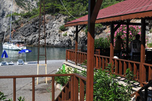 Aus nicht bekannten Gründen war das alte Restaurant 2008 geschlossen und einschl. Holzsteg abgerissen worden. Damals wurde spekuliert, dass das Gelände an einen Investor verkauft wurde, der angeblich in der Bucht ein Hotel bauen wollte. Doch wir können aufatmen: ein neuer Wirt versucht sein Glück mit Fisch vom Grill und türkischen Vorspeisen Yachties anzulocken. Die Bucht kann also wieder angelaufen werden.