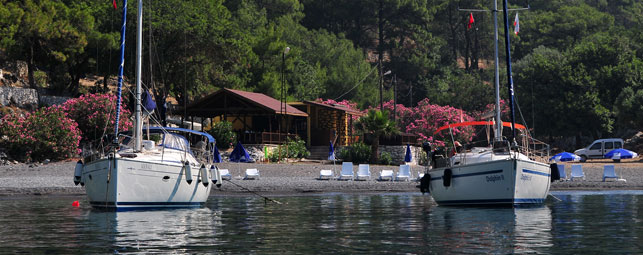 Ende Juni 2011 soll angeblich ein Schwimmsteg entstehen, an dem Yachten anlegen können, wenn Sie im Restaurant zu Abend speisen. Sogar Strom und Wasser soll angeboten werden, allerdings gegen Bezahlung. Vorteil des Platzes: Straßenzugang für die Versorgung von Dalaman. Einziger Nachteil: in der gesamten Bucht keine Netzverbindung. Der Strand gegenüber im Westteil der Bucht ist weiterhin als einsamer Ankerplatz mit Leine zum Land zu empfehlen. Einziger Nachteil: Die Dünung läuft auch im hinteren Teil der Bucht während der gesamten Nacht auf den Strand und das Boot rollt ein wenig.