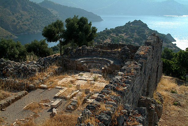Ausgrabungen an der St. Nicholaus Kirche ergaben, dass das Bauwerk infolge eines Großbrandes eingestürzt war. Da bei den Ausgrabungen außer ein paar Nägeln keine anderen Metallgegenstände gefunden wurden, geht man davon aus, dass vor dem Brand eine Plünderung stattfand. Mit großer Wahrscheinlichkeit wurde die Kirche im 7. Jh.n.Chr. von arabischen Raubzüglern in Kleinasien zerstört, wonach sich die Inselbewohner ins Landesinnere zurückzogen. Nachdem sich das byzantinische Reich im 11. Jh.n.Chr. wieder erholt hatte, versuchte eine kleinere Gemeinde, den vergangenen Glanz der Insel wieder auferstehen zu lassen. Diese Bemühungen blieben jedoch vergeblich.