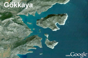 Gök bedeutet Himmel und kaya Felsen, also Himmelsfelsenhafen schöner kann eine Bucht kaum heißen. Bei der Ansteuerung müssen die verschiedenen Klippen beachtet werden, die in den Seekarten wegen des kleinen Maßstabes nicht zu erkennen sind.