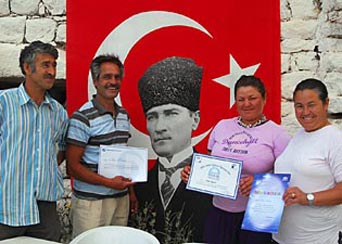 August 2007: Gemütlich sitzen wir vor der alten Mauer des verfallenen byzantinischen Anwesens und bekommen - während der Ziegenbraten im Feuer schmurgelt - folgende Geschichte zu hören: Vor einigen Tagen war Hüseyin Simsek, Direktor des Marmara Kollleg aus Istanbul als Gast auf einer Gulet in der Bucht und hat Ceren kennen gelernt. Wie wir ist er vom Charme und der sprühenden Intelligenz des Kindes entzückt. Ergebnis des munteren Gespräches, das wohl auch eine kleine Prüfung gewesen ist, ohne dass Ceren etwas davon gemerkt hat: weil das Kind so überdurchschnittlich fähig und sprachbegabt ist, muss es gefördert werden und eine gute Schulbildung bekommen. Dem Kolleg-Direktor ist schnell klar, dass die Eltern kaum in der Lage sind, von dem was das Restaurant nach Abzug der hohen Pacht (ca 30.000 EUR pro Saison) abwirft, den Schulbesuch ihrer Kinder auf einem gehobenen Kolleg zu bezahlen. So schlägt er vor, den Kollegbesuch der kleinen Ceren aus dem Fundus zur Förderung begabter Kinder zu bezahlen, den die Schule für solche Fälle aufgelegt hat. Wouh!