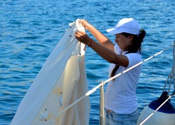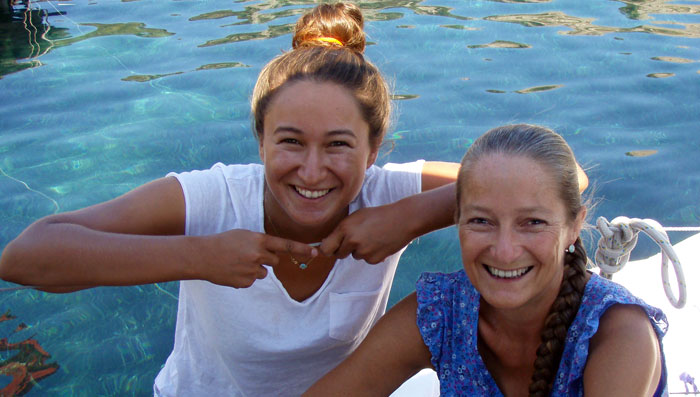 Im September 2007 fahren Mama und Tochter zusammen nach Istanbul, besichtigen das Kolleg, beziehen ein kleines 3x3 Meter großes Zimmer, hängen ein paar Bilder auf - dann reist Mama wieder ab. Familie und Freunde sind gespannt wie das clevere Aschenputtel aus dem kleinen Dorf Sögüt auf der Loryma-Halbinsel den Übergang in die Großstadt und aufs Internat schaffen wird. Von den Eltern hat sie jede moralische Unterstützung - die beiden sind stolz auf ihre kluge und quirlige Tochter. Alle versichern sich gegenseitig ständig des großen Glücks, das die Kleine hat und hoffen, dass sie durchhält und nicht vor lauter Heimweh schon nach wenigen Wochen wieder nach Hause will. Bei unserem Kennenlernbesuch darauf angesprochen warf sie entschlossen den Kopf zurück und sagte: "Yok - istiyorum!" (- nein, ich will!). Juni 2008: Wieder sitzen wir an der alten Mauer vor der roten Fahne mit dem Bild Atatürks und wollen wissen wie es Ceren geht. Mama Sengül strahlt: "Iyi, çok iyi!". Die ersten Monate bis November habe es viele Tränen gegeben - im fernen Istanbul und hier im Dorf. Aber jetzt habe Ceren es geschafft, sie sei in allen Fächern gut (sie holt die Zeugnisse und zeigt sie uns) und habe inzwischen auch einige Freundinnen. "In zwei Wochen sind Sommerferien, dann kommt sie nach hause in die Bucht", strahlt Sengül. Ganz bestimmt locke sie dann wieder die Yachten an den Holzsteg... Ceylan, die große Schwester, knetet den Teig für's täglich frische Holzofenbrot und strahlt: "Wir sind alle sehr, sehr glücklich!" Winter 2009 Nun ist es endgültig: das Loryma Restaurant wird entweder geschlossen oder bekommt einen neuen Pächter. Der Vermieter wollte zu viel Miete haben (die Gerüchtküche munkelt von 30.000 EUR). Das konnte der kleine Familienbetrieb nie und nimmer erwirtschaften. Papa Muhammet wird wieder als Kaptan auf einer Gulet anheuern und Mama Sengül wird mit der großen Tochter Ceylan wieder ins Buchten-Tücher-Mandel-Geschäft-mit-dem-Ruderboot einsteigen. Inshallah hält Ceren in Istanbul durch. Wir drücken ihr ganz fest die Daumen.