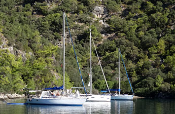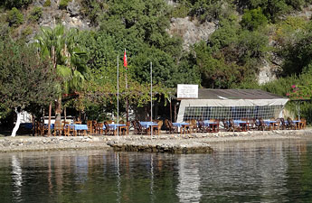 Das NOMAD mit neuem Steg am neuen Platz wird in der bisherigen Weise weiter geführt. Im Herbst waren deshalb auch alle Yachten, die die Bucht angelaufen haben, dem Lockruf des vertrauten Restaurants gefolgt und lagen dort am Steg. 30 Yachten können dort an Murings anlegen. Wasser, Dusche und WC in gewohnter Weise wie am alten Platz. Man sitzt auch hier direkt am Wasser oder unter schattenspendenden Bäumen und hat die Auswahl zwischen leckeren türkischen Vorspeisen und Hauptgerichten vom Grill oder Ofen. Dazu wird frisch gebackenes Bauernbrot aufgetragen und Wein und Bier nach der Karte.