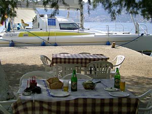 Der Peloponnes ist schön, aber es gibt kaum einigermaßen geschützte Ankerplätze. Außerdem bekommt man eher Diesel als Wasser dort unten. Insofern nicht das ideale Segelrevier, meinen wir.