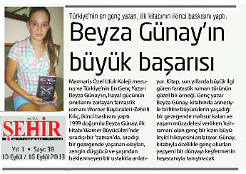 Natürlich waren wir neugierig und wollten die junge Schreiberin kennen lernen. Minuten später war sie da und strahlte uns an. Erster Eindruck: ein hübsches Mädchen mit langen dunklen Haaren und großen Augen, in keiner Weise anders als andere junge Mädchen in ihrem Alter. 15 Jahre sei sie inzwischen alt, 1999 in Marmaris geboren. Das Buch habe sie mit 14 geschrieben. Freimütig erzählt sie, dass die erste Auflage, die natürlich nicht riesengroß war, bereits verkauft und nun die zweite Auflage jetzt im Druck und sehr bald fertig sei. Über den Erfolg, den sie ausgelöst habe, sei sie sehr verwundert gewesen, viel Politikprominenz wollte unbedingt mit ihr fotografiert werden, sogar der Ministerpresident in Ankara habe sie empfangen. Eigentlich habe es ihr nur Spaß gemacht, das Buch zu schreiben. Jetzt aber sei sie auf den Geschmack gekommen und arbeite schon am zweiten Buch. Titel und Inhalt wolle sie aber noch nicht verraten.