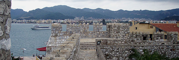Nachdem wir die Nasen in jeden Winkel der Burg gesteckt hatten, schlenderten wir noch durch das Basarviertel. Was uns nicht gefiel waren die großen und hässlichen Häuser und Hotels, und die "Anmache" im Restaurant- und Barviertel. Das waren wir aus Bodrum nicht so gewohnt. Wir flüchteten an die Wasserfront und schlenderten die Promenade entlang bis zur Abfahrt unseres Busses.