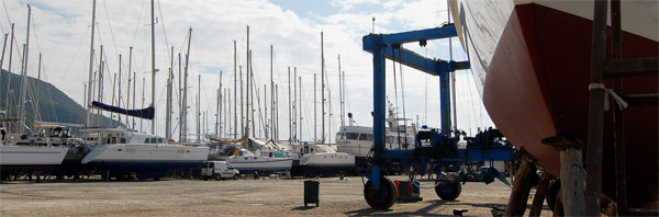 Günstiger Winterstellplatz: hier steht der größte Travellift im Östlichen Mittelmeer (330 t)