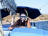 Hendrik war wieder abgereist, so fragten wir uns, ob wir Zwei das Boot auch gemeinsam bedienen könnten und kamen zu dem Ergebnis - wir können. Ute ist bekanntlich praktisch veranlagt und hat sich bei früheren Segeltörns schon als vielseitige Skipperin bewährt. Mein schwedisches Kapitänspatent lieferte die Legitimation zum Fahren der YESIM. Am 21.07. war es dann so weit, alle Vorbereitungen waren getroffen. Wir wollten einige Tage in den Gökovagolf. Hinter Bodrum setzten wir die Genua, segelten an Karaada, der Schwarzen Insel, vorbei gen Osten, bis der Wind abflaute und dann ging es unter Motor weiter. Wir ließen die Sea Garden Anlage hinter uns und steuerten die Bucht bei Alakizlar an, die neben klarem Wasser auch noch lohnenswerte Ruinen aus byzantinischer Zeit bietet. Gegen 14.30 warf Ute den Anker. Dann kam sie nach achtern, um ins Wasser zu hüpfen und die Heck-Leine an einem Stein zu befestigen, als ihr Blick nochmals dorthin fiel, wo die Ankerkette befestigt sein sollte. Doch dort war nichts: die gesamte Kette war davon gerauscht und mit dem Anker voran in der Tiefe des Meeres verschwunden. Unsere Tage auf der YESIM schienen damit bereits vorzeitig beendet zu sein. Da es zu tief war zum Tauchen und es auch bereits dämmerte, fuhren wir zurück in Richtung Bodrum. Der Wind hatte ausserhalb der Bucht stark zugenommen und 6 Beaufort bliesen uns direkt in die Nase. Nur langsam kamen wir voran. Als wir wieder Handy-Empfang hatten, informierten wir Öznur, dass der Anker entwischt sei. Erstaunt erfuhren wir, dass es auf dem Boot noch einen Ersatzanker gab, den wir auch fanden und mit der 60 Meter langen Leine verbanden, die ebenfalls an Bord war. Erschöpft, aber auch glücklich über den Ersatzanker, ließen wir ihn in der Pabuc-Bucht neben dem Sea Garden Hotel zu Wasser. Diesmal versäumten wir es nicht, das Kettenende ordentlich zu sichern, damit uns der Ersatzanker nicht auch noch davon rauschte. Ruhe kehrte dennoch nicht ein. Es war nicht zu übersehen, dass der Anker nicht hielt und so entschlossen wir uns den Ankerplatz zu wechseln und den Anker nochmals an einer anderen Stelle zu werfen, bevor es endgültig dunkel wurde. In einer Nebenbucht versuchten wir es noch zweimal. Nachdem es stockdunkel geworden war und Ute vom langen Schwimmen und Leine-an-Land-befestigen usw. sichtlich erschöpft war, gaben wir uns zufrieden. Der Sturm hatte nachgelassen und sich bis auf einige Böen gelegt. Ute, die sonst so vorzüglich kocht, war an diesem Abend zu keinem opulenten Abendessen mehr zu bewegen der Appetit war ihr vergangen und sie fand auch keinen richtigen Schlaf aus Sorge um den kritischen Ankerzustand. Nach ihrer glaubhaften Aussage am nächsten Morgen soll ich hörbar tief geschlafen haben. Der positive Aspekt von Utes Wachzustand war schließlich, dass sie durch intensives Nachdenken herausgefanden hatte, warum der Anker nicht richtig gegriffen hatte: die Querstange, die dem Anker die Richtung verleiht, war nicht richtig positioniert. Als der Anker endlich wieder oben war, brachte sie dies rasch in Ordnung. Für den zweiten Tag hatten wir uns vorgenommen, den verlorenen ersten Anker zu suchen. Wir steuerten die bekannte Alakizlar-Bucht an, ankerten an der gleichen Stelle wie am Vortag und ich entdeckte die verlorene Kette auch in einer Tiefe von gut 10 Metern, was für mich ohne Sauerstoffgerät zu tief zum Tauchen war. Wir genossen den Tag dennoch bis wir am späten Nachmittag bemerkten, dass ELIFSU II, eine Bodrumer Gulet, bei der Abfahrt mit ihrem Anker eine fremde Kette hochzog. Für die Bootsleute war die Kette nicht sonderlich interessant und so liessen sie sie wieder ins Wasser gleiten. Ich ging sofort auf Tauchstation, denn es war zweifellos unsere Kette - mit Anker. Der Vorteil war: jetzt lag die Kette nur noch auf etwa 6 m Tiefe. Wir verlagerten unseren Ankerplatz sofort, so dass wir über der verlorenen Kette zu liegen kamen. Am nächsten Morgen nach Sonnenaufgang tauchte ich hinab, zog ein dünnes Seil durch die Kette und der Rest war nur noch eine Kleinigkeit. Morgenstund hatte wieder einmal zwar nicht Gold, aber einen Anker mit Kette im Mund. Wir steuerten nach Çökertme, bekannt wegen Kaptan Ibrahims Restaurant, legten uns ohne Anker an den sicheren Steg, wurden herzlich willkommen geheissen, genossen den Abend und schliefen prächtig. Auch den folgenden Tag und Abend verbrachten wir an diesem Liegeplatz, unternahmen einen ausgedehnten Spaziergang, trafen diverse Kapitäne wie Hüseyin aus Yakaköy, Sari Mehmet von der FLAS, ebenso Turhan aus Milas und Marion, die mit einem Kat unterwegs war. Am nächsten Morgen früher Start, zurück in Richtung Bodrum, Badepause in der glasklaren Tavsan-Bucht. Am Nachmittag fuhren wir bei starkem Wind näher an Bodrum heran und ankerten in die Bucht neben dem Club M. Hotel. Die Segel hatten wir nicht mehr gesetzt, nachdem wir den Riss am Mastfuß festgestellt hatten. Die Pumpe, die das Wasser, das sich im Kielraum sammelte, auszupumpen hatte, musste jetzt alle zwei Stunden eingeschaltet werden. Ute kam auf die Idee, in dieser Nacht mit Taucherbrille und Schnorchel zu schlafen, was wir dann allerdings doch unterliessen - es wäre vielleicht doch etwas zu übertriebene Vorsicht gewesen. Das WC brachten wir auch wieder in Ordnung. Viele Schrauben mussten nachgezogen werden und Ute sah ich häufig beim Putzen, was kein Luxus war. In der Bucht vor Bodrum genossen wir die YESIM noch bis zum frühen Abend. Wir hatten sie ins Herz geschlossen und planten die nächsten Unternehmungen. Gegen 18.30 starteten wir den Motor, um in den Hafen zurück zu motoren. Aber er sprang nicht an. Nach mehreren Versuchen klappte es schließlich doch noch, aber aus dem Motorraum quoll weißer Rauch, der uns auf der letzten halben Stunde bis in den Hafen begleitete. Die Bilgepumpe schöpfte unentwegt Wasser und wir stellten sie erst im Hafen ab. Das Einparkmanöver klappte erstmals perfekt. Wir haben uns entschlossen, die YESIM wieder im Hafen ruhen 