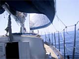 Dieser Bericht einer abenteuerlichen Fahrt in den Gökovagolf stammt von Günter und Ute, die gemeinsam den Versuch wagten, mit einem Schiff, das mehr das machte, was es wollte, als das, was sie wollten, dem sommerlichen Bodrum zu entfliehen In diesem Jahr bot sich uns eine überraschend neue Gelegenheit, den Trubel der Stadt hinter uns zu lassen, nachdem uns Öznur ihr Schiff mit dem wohlklingenden Namen YESIM, was "Jade" bedeutet, zur Verfügung gestellt hatte. Zunächst eine kurze Beschreibung der YESIM: Sie ist etwa 9 Meter lang, aus Holz gebaut wie eine Gulet, ein Einmaster, hat Genua- und Hauptsegel, eine geräumige Masterkabine im Bug, zwei Schlafplätze im Salon, vier Sonnenmatratzen, sechs Sitzplätze am Heck, Küche, WC/ Du - und Kühlboxen für Stangeneis. Man kann also getrost behaupten, dass die YESIM einmal ein hübsches Boot war, das in den vergangenen Jahren allerdings nicht die nötige Aufmerksamkeit erhielt. Derzeit wird es als schwimmende Pension von zwei Jungs genutzt, die in dem Lebensmittelladen nebenan arbeiten und ihr Bett somit vor der Haustür haben. Öznur war ganz glücklich, als wir anfragten, ob wir das Boot einmal nutzen könnten, nachdem unser Freund Hendrik aus Hamburg im Juni in Bodrum war, der gerade sein Kapitänspatent mit Bravour erworben hatte und natürlich stark interessiert war, seine frischen Kenntnisse in der Praxis der Ägäis umzusetzen. Die ersten gemeinsamen Tagestouren zeigten uns sehr schnell, dass Theorie und Praxis zwei paar Stiefel sind und vor allem, dass ein sog. Langkieler, wie die YESIM, bei Rückwärtsfahrt letztendlich macht was sie will steuert man nach rechts, fährt sie nach links oder umgekehrt. Eine Regel gibt es nicht; es hilft nur Gefühl und Übung, genaue Beobachtung des Windes, der Strömung und der Wellen - und vor allem Geduld.